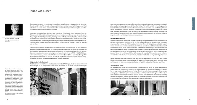Ergänzt werden die Projekte in bewährter Weise durch den umfassenden Adressteil sowie durch Fachbeiträge zu Umnutzung und Flächeneffizienz. „Die Perspektive einer professionellen, praktizierenden BDIA-Innenarchitektin bzw. eines Innenarchitekten darf beim wichtigen Thema Verdichtung im Bestand nicht fehlen,“ sagt Sylvia Leydecker, BDIA Vizepräsidentin und Redakteurin des Handbuchs, „die Politik ist gefordert, Lösungen zu finden, Innenarchitektinnen und Innenarchitekten gehören als interdisziplinär arbeitende Profis dazu. Als BDIA sind wir an der Zukunft interessiert, denn dafür gestalten und bauen wir."